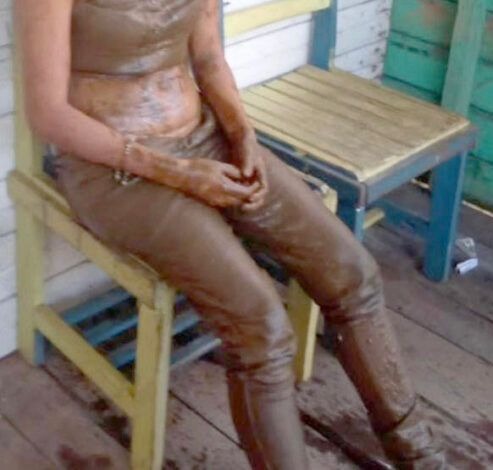Vídeos de câmeras de segurança mostram a menina saindo da área onde foi violentada toda coberta de lama e passando mal.