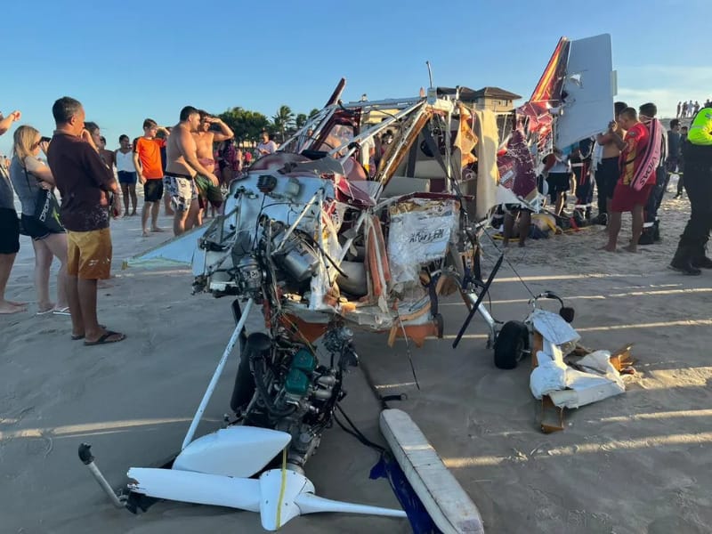 Uma aeronave ultraleve caiu na tarde desta quinta-feira (5) na praia de Aquiraz, na Região Metropolitana de Fortaleza. Imagens mostram destroços da aeronave na faixa de areia da praia e várias pessoas no mar tentando salvar possíveis vítimas.