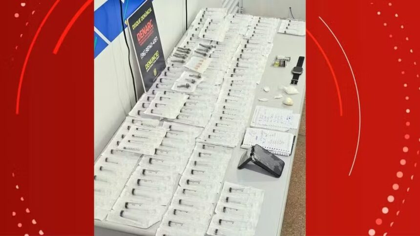 No local, os policiais encontraram porções de entorpecentes, além de substâncias anabolizantes e produtos para emagrecimento, bem como materiais farmacêuticos como seringas e agulhas. Diante da situação, ele também foi autuado em flagrante por tráfico de drogas e resistência à prisão.