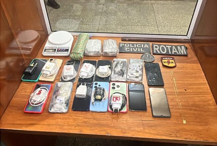 Com ele, foram encontrados 14 telefones celulares, carregadores, uma balança de precisão, porções de entorpecentes e uma corda, que, de acordo com os investigadores, possivelmente seria utilizada para arremessar os materiais para dentro da unidade prisional — prática comum em tentativas de abastecer detentos com itens proibidos.