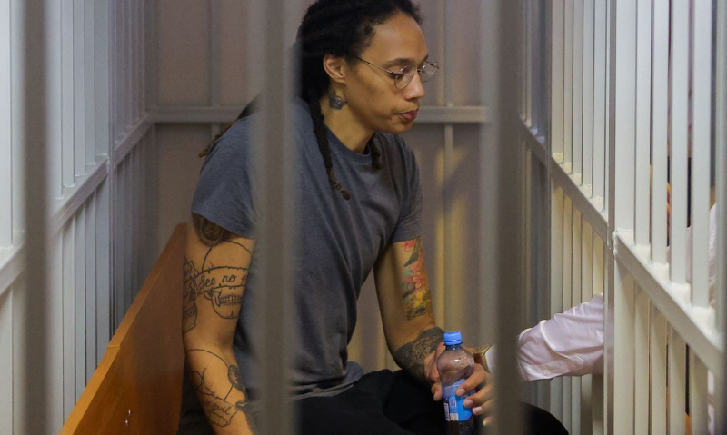 Griner foi presa em 17 de fevereiro no aeroporto Sheremetyevo, em Moscou, com cartuchos contendo óleo de haxixe em sua bagagem.