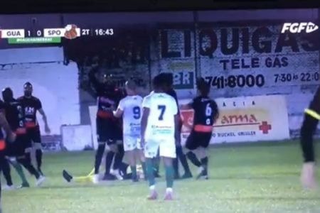 Uma atitude lamentável suspendeu a partida entre Sport Clube São Paulo e Guarani, válida pela Série A2 do Campeonato Gaúcho. William Ribeiro, jogador do Sport São Paulo, agrediu de forma covarde Rodrigo Crivellaro, com um chute na cabeça.