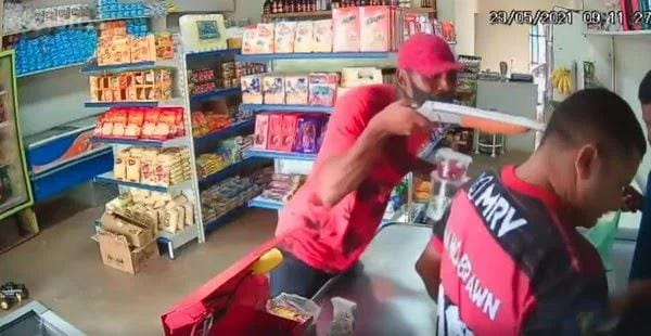 Os criminosos foram flagrados por câmeras de segurança de um dos estabelecimentos assaltados.
