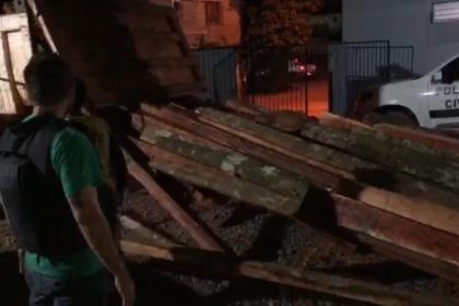Polícia apreende grande quantidade de madeira extraída ilegalmente.