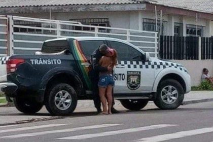 Guarda Municipal de Macapá-AP emite nota e diz que vai apurar imagem de inspetor beijando mulher em viatura.
