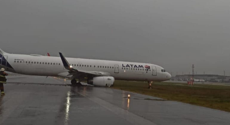 Um avião da Latam que decolou do Aeroporto Internacional de São Paulo rumo a Florianópolis (voo LA 3300) sofreu um incidente ao sair da pista do terminal catarinense na manhã desta quarta-feira (12).