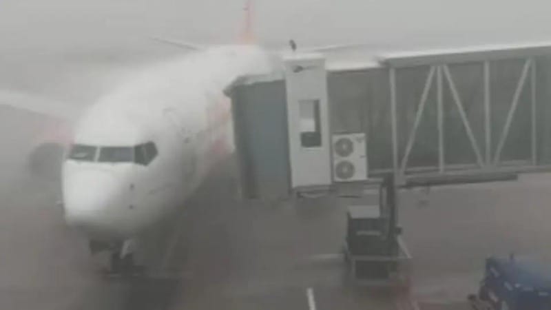 Já o Boeing da Gol, estava acoplado a ponte telescópica, e a ponta da aeronave se afastou, este não teve estragos.