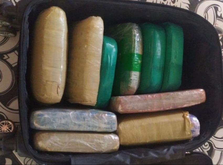 Os ilícitos estavam embalados e escondidos dentro de uma mala.