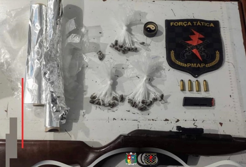 Nesta quinta-feira (7), uma equipe do Batalhão de Força Tática recebeu uma denúncia por volta de 10h00 de que no bairro Cidade Nova haveria um intenso tráfico de drogas, diante das informações a equipe se deslocou para a averiguação, chegando no local a proprietária da residência permitiu a entrada nos militares no interior da casa e durante a busca no local foi encontrado uma arma de fogo em baixo da cama da mulher, no quarto também foi encontrado um recipiente de vidro com material entorpecente e matérias para embalagens comercialização da droga.