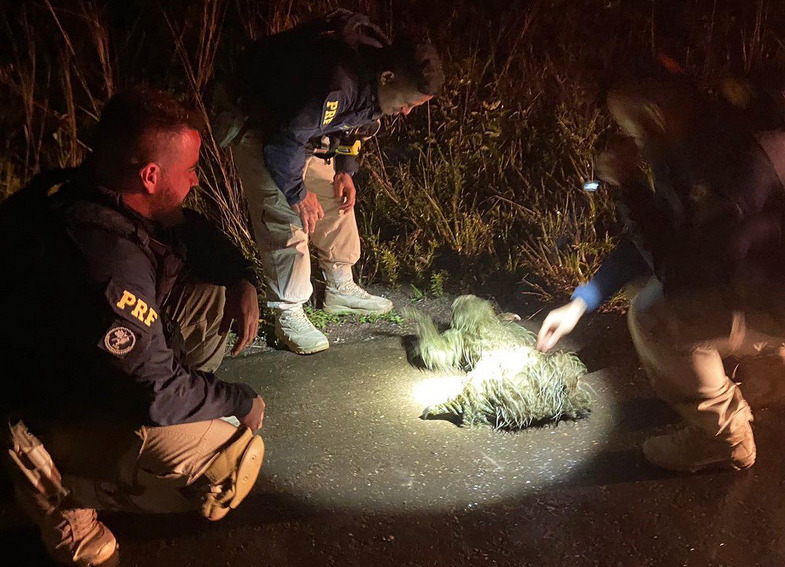 Um bicho-preguiça foi resgatado na BR-210, pela Polícia Rodoviária Federal (PRF) no Amapá. O animal foi encontrado tentando atravessar a estrada no quilômetro 178. A ação aconteceu no domingo (29), mas só foi divulgada na quarta-feira (1º).
