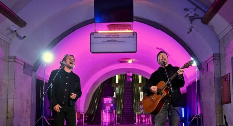 Da plataforma de uma estação de metrô da capital ucraniana, o lendário músico, de 61 anos, e o guitarrista The Edge apresentaram vários clássicos do grupo, como Sunday Bloody Sunday, Desire ou With or Without You.