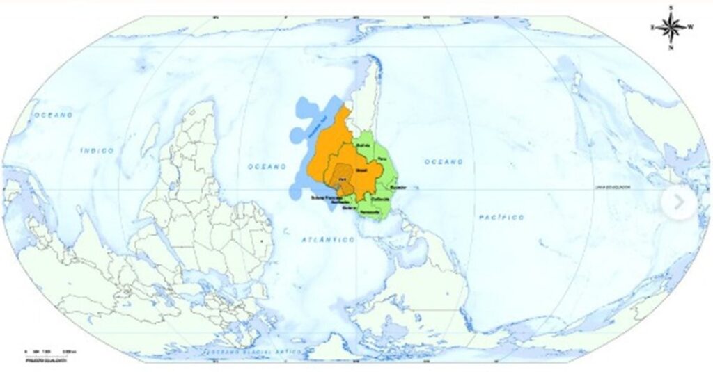 “Belém, o Pará e o Brasil estāo no centro do mundo com a COP30! Para marcar este mês, em que o compromisso de construir uma transição ecológica justa e sustentável ganha destaque, o IBGE preparou um mapa-múndi invertido especial”, diz o órgão em uma publicação no Instagram.