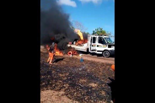 Um caminhão com botijões de gás de cozinha e combustível pegou fogo na manhã desta sexta-feira (23), na BR-210, no quilômetro 22 perto de Macapá. Não houve feridos.
