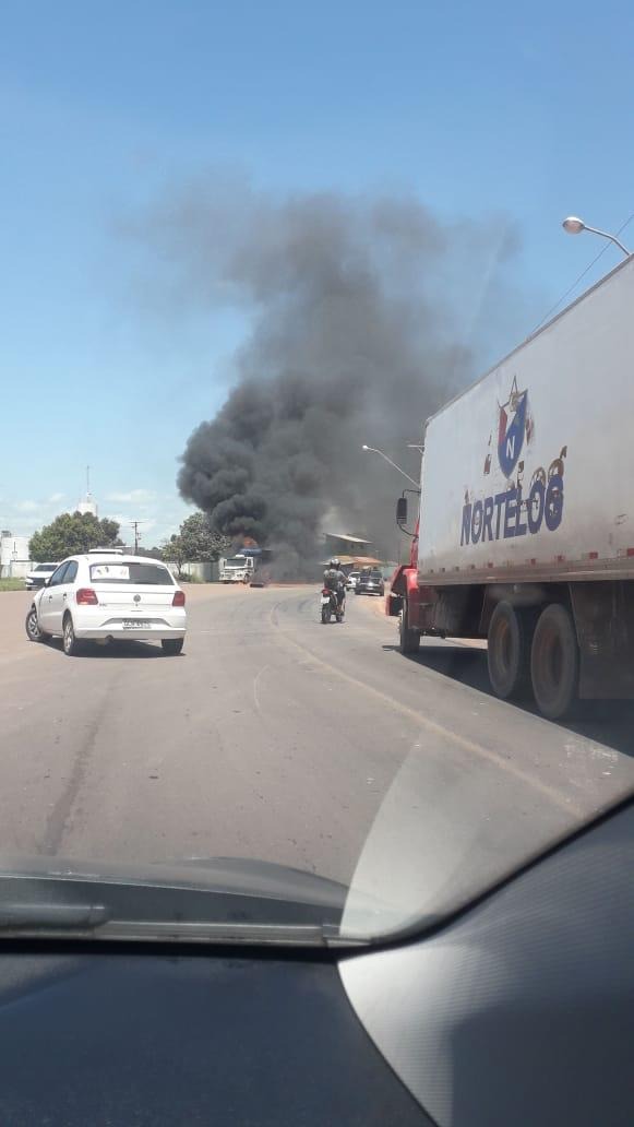 Um carreta que faz transporte de soja pegou fogo na manhã deste sábado (5), na Rodovia Duca Serra, em Macapá.