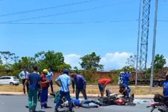Colisão entre duas motos deixa condutores gravemente feridos na Rodovia Norte-Sul