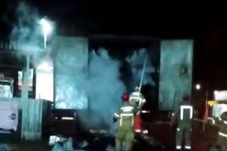 VÍDEO: caminhão carregado com carvão pega fogo em Porto Grande, no AP