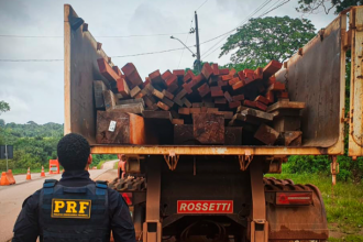 PRF apreende caminhão com madeira irregular na BR-156 a caminho de Oiapoque, no AP