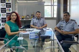 MP-AP e Policía Militar debatem projeto que utiliza câmeras em ações militares.