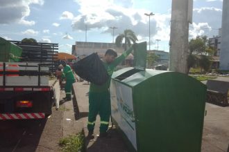 Lixeiras com novo design para armazenamento de resíduos são instaladas em Macapá