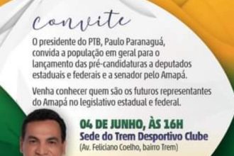 PTB do Amapá convida para o lançamento das pré-candidaturas a deputados estaduais e federais e senador.