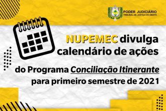 Calendário de ações do Programa Conciliação Itinerante para o primeiro semestre de 2021 no Amapá.
