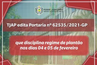 TJAP publica portaria disciplinando regime de plantão nos dias 04 e 05 de fevereiro.