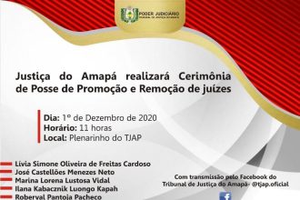 Justiça do Amapá realizará Cerimônia de Posse para Promoção e Remoção de juízes.