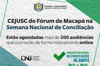 Semana Nacional de Conciliação no Amapá: CEJUSC/TJAP realizará programação com atendimentos diversos à população.