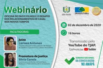 CEJUSC de Santana/Ap realizará webinário sobre o projeto Oficina de Pais e Filhos durante a Semana Nacional de Conciliação