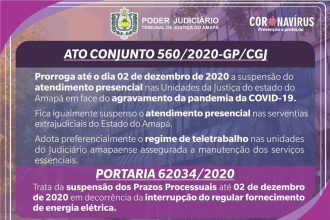 TJAP prorroga até o dia 02 de dezembro a suspensão do atendimento presencial nas unidades da justiça do estado do Amapá.