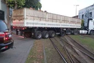 Carreta com 6 toneladas de maconha enguiça sobre trilhos do VLT no Rio após ser apreendida