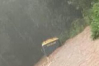 Um ônibus escolar foi tomado pela água em Capinzal,…