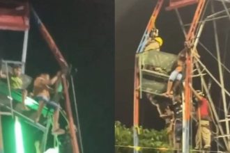 Crianças ficam presas em roda-gigante após cadeira quebrar e são resgatadas por bombeiros