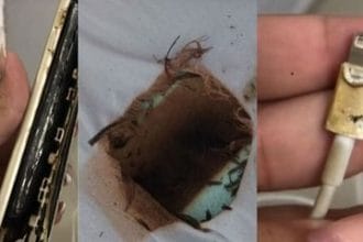Celular explode enquanto carregava ao lado de menina que dormia e deixa rombo na cama