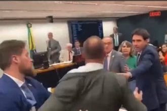 Eduardo Bolsonaro parte para cima de deputado petista após facada ser questionada: “Te enfio a mão na cara”