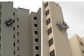 Trabalhadores ficam presos em andaime pendurado no 13º em MG