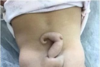 Uma bebê nasceu com uma cauda de 6 cm de…