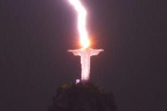 Fotógrafo registra o exato momento em que raio cai no Cristo Redentor