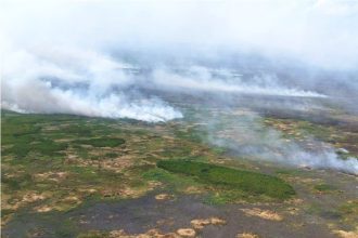 Operação conjunta combate incêndio que atinge o Parque Nacional do Cabo Orange