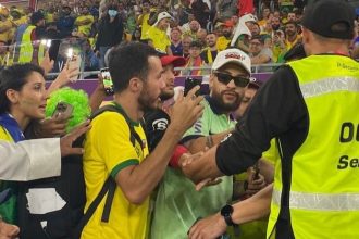 Sósia de Neymar causa alvoroço em Doha e entra de penetra escoltado em jogo do Brasil