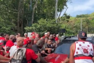 Torcida chuta carro de Gabigol em protesto contra o Flamengo