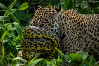 Imagens raras mostram batalha entre sucuri e onça-pintada no Pantanal