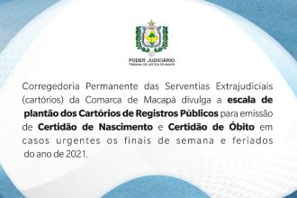 Corregedoria Permanente de Serventias Extrajudiciais divulga lista de cartórios plantonistas para finais de semana e feriados em 2021 em Macapá/Ap.