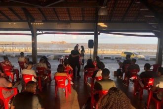 Protesto: Alunos têm aula em bar da Orla de Macapá.