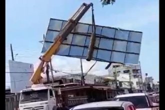 Vento forte deixa outdoor descontrolado na Orla de Macapá/Ap.