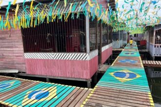 Em Macapá, moradores pintam e enfeitam ponte em madeira no clima da Copa