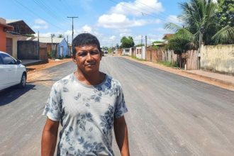 ‘Graças ao asfalto novo, agora eu consigo levar meus filhos para a escola tranquilamente’, comemora morador da zona norte de Macapá