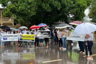 Família do tenente assassinado por colega de farda faz manifestação em frente ao MP