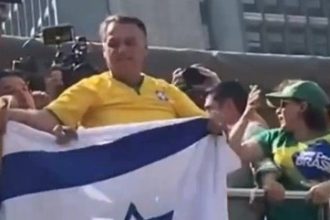Em ato na Paulista, Bolsonaro exibe bandeira de Israel e Michelle chora ao discursar