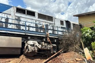 Carreta avança sinal vermelho, atinge trem em linha férrea e vagão invade casa após colisão no Paraná